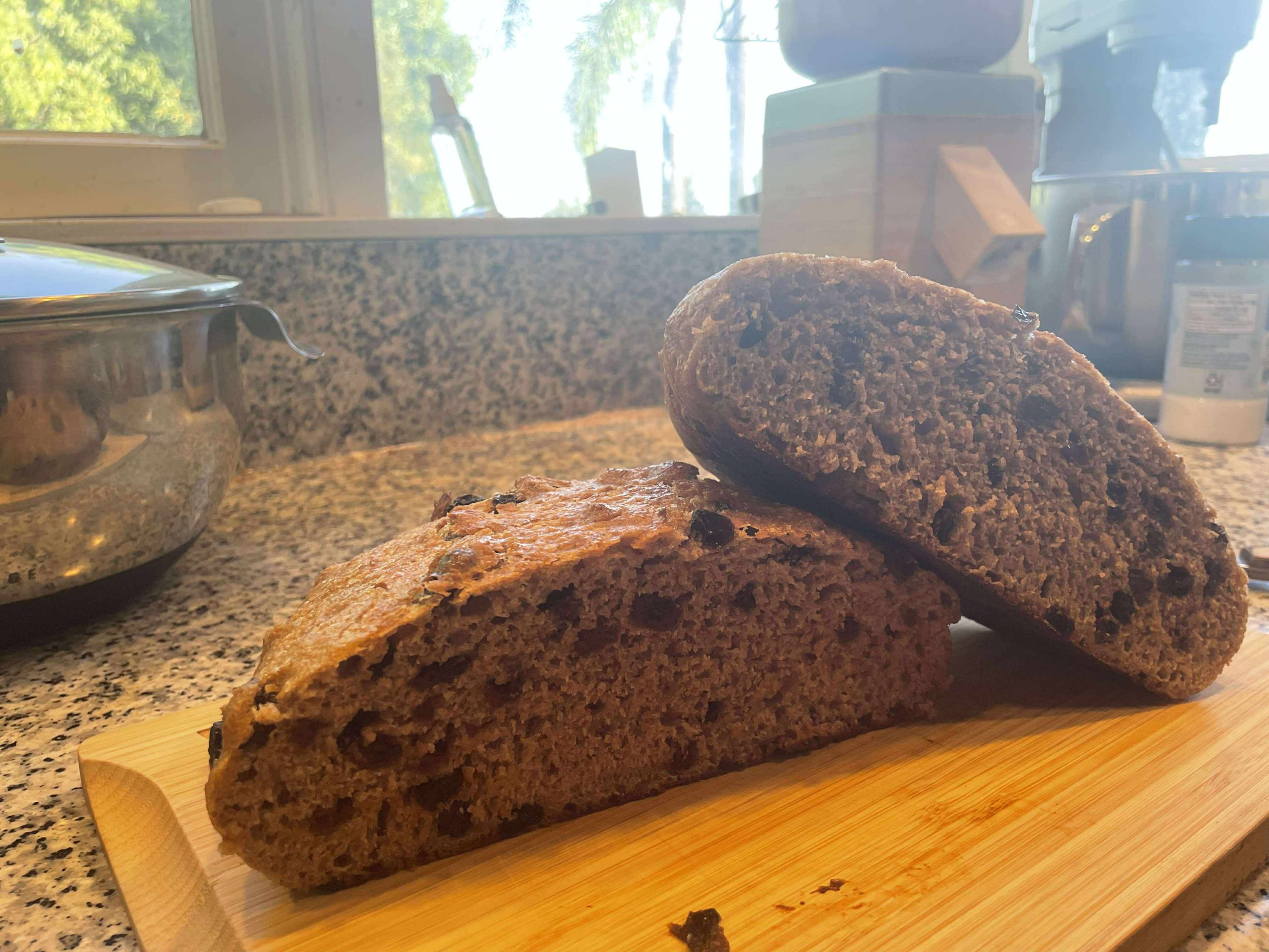 Thereβs something magical about the smell of raisin bread baking β sweet fruit, a hint of honey, and that toasty sourdough crust filling the kitchen. This loaf is my go-to for mornings when I want something wholesome yet comforting. Itβs a one-day recipe, which means you can feed your starter after breakfast and be slicing warm bread by dinner. πΏπ₯