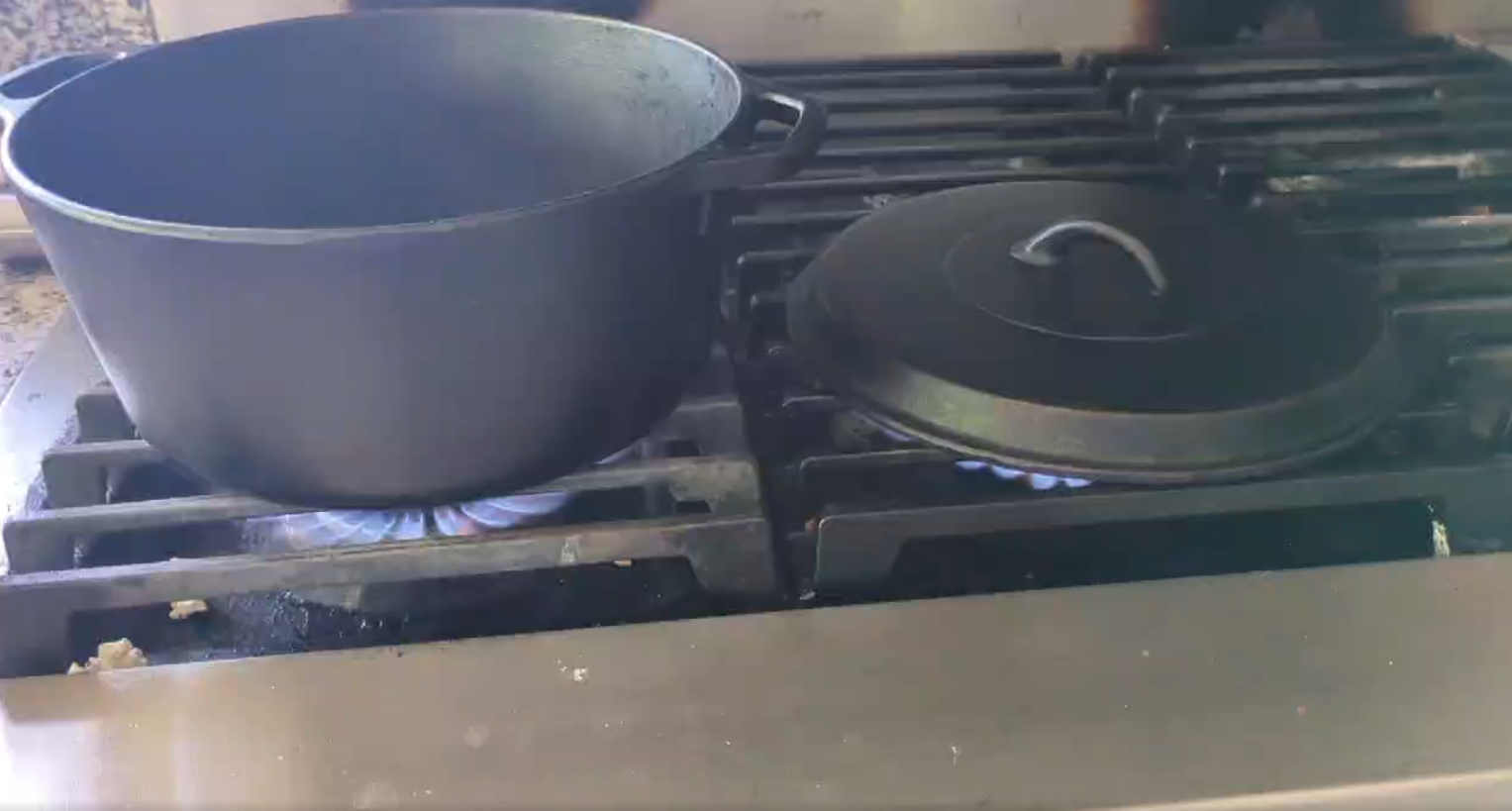 We heated our cast iron on top of our gas stove in order to reduce the time the electric oven was on ($$$).
