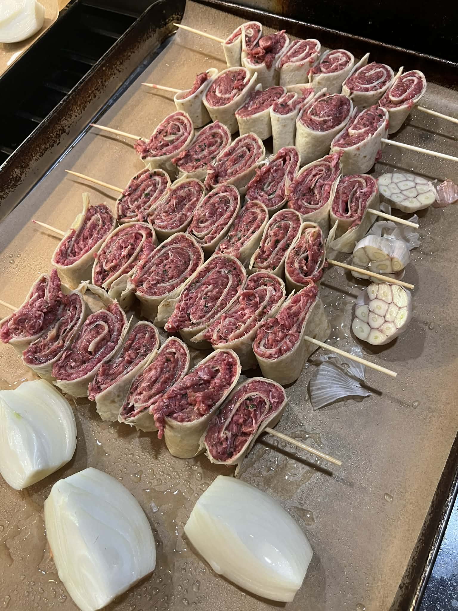 These baked kofta-style pinwheels are made with Beyond Beef blended with fresh herbs, garlic, and spices, then spread onto tortillas, rolled, sliced, and skewered before roasting in the oven. It was just as easy to make a second tray using ground beef for the folks in our family who eat meat, and both versions were a big hit. Everyone could share the same meal together while still eating what works for them.
